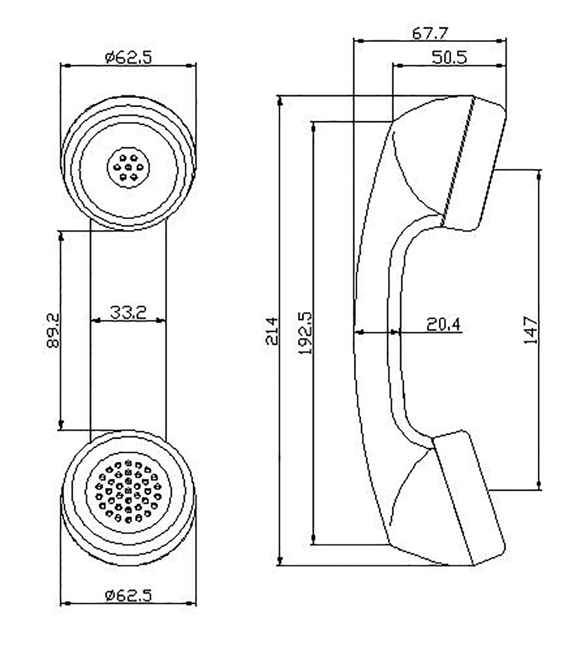 A detailed dimensional drawing of the handset is included in each instruction manual to assist you in verifying whether the size meets your requirements. Should you have any specific customization needs or require modifications to the dimensions, we are pleased to offer professional redesign services tailored to your demandings.